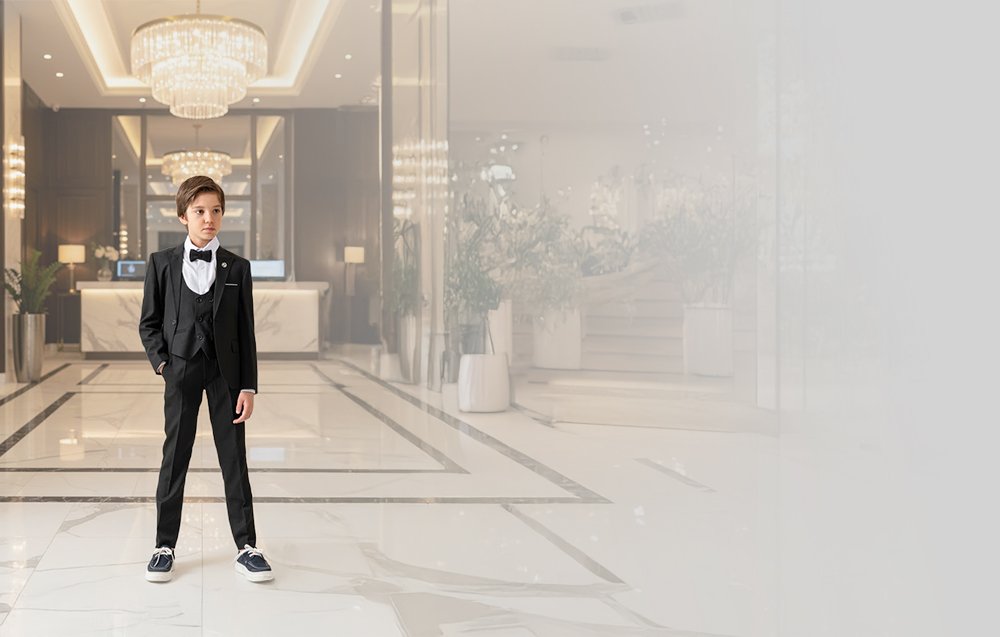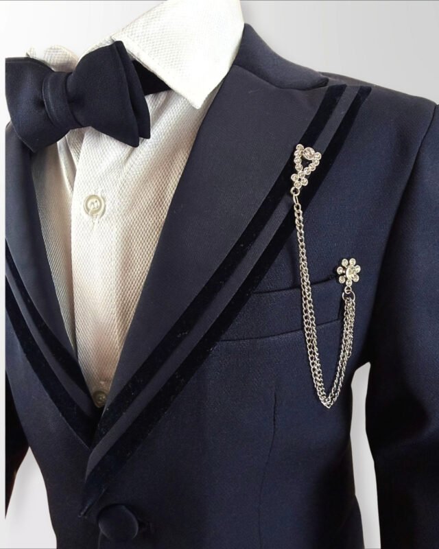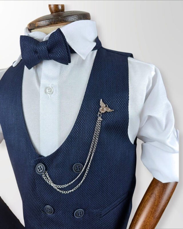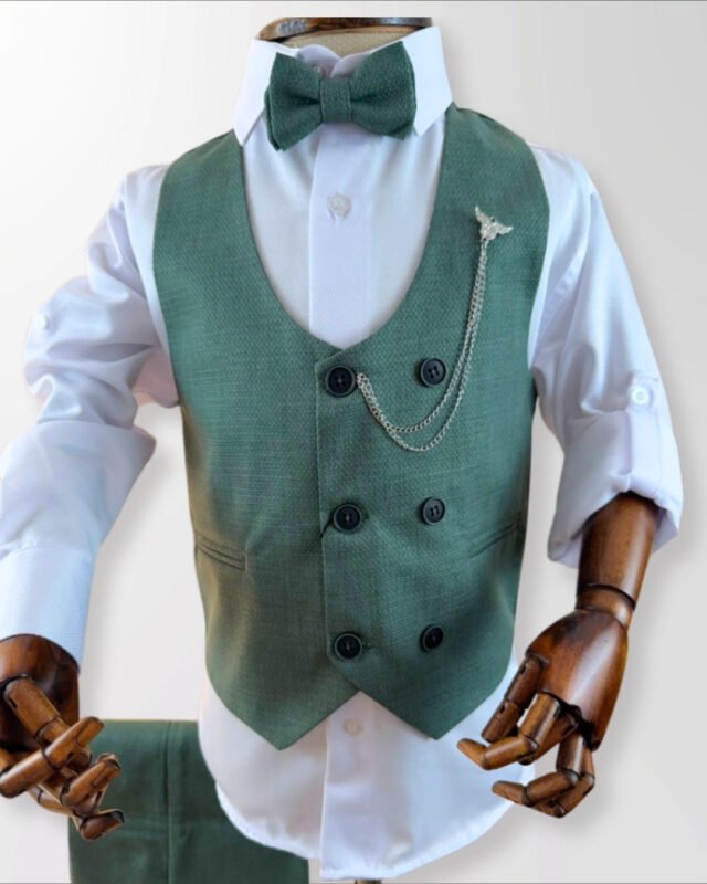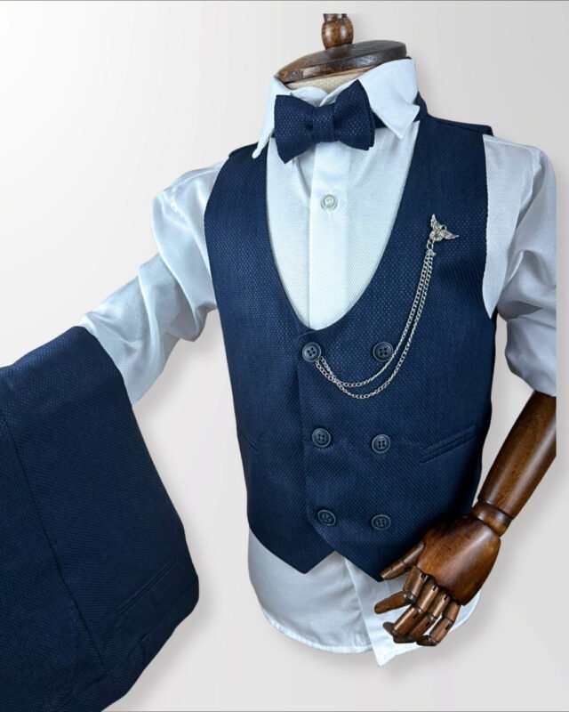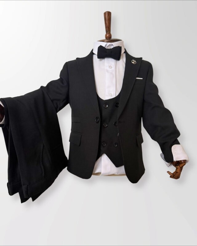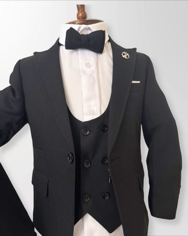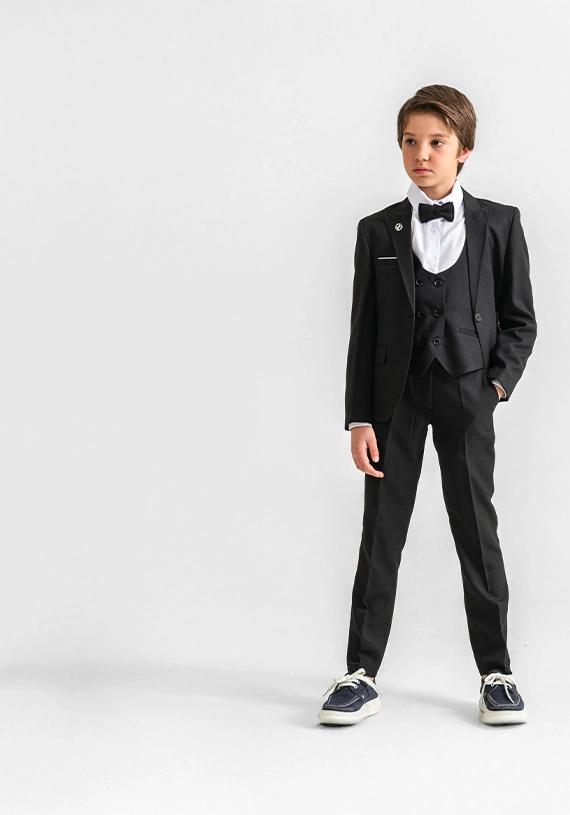 Complete ensembles including jacket, waistcoat, shirt, trousers, and bow tie — perfect for formal occasions where young gentlemen shine.