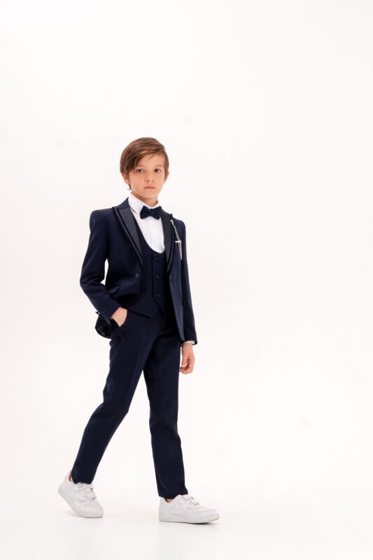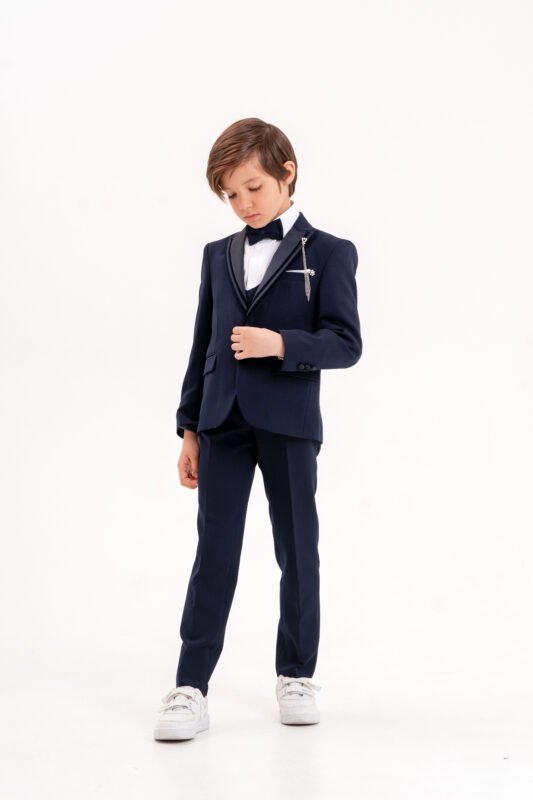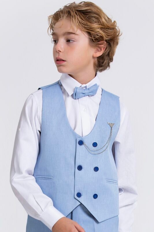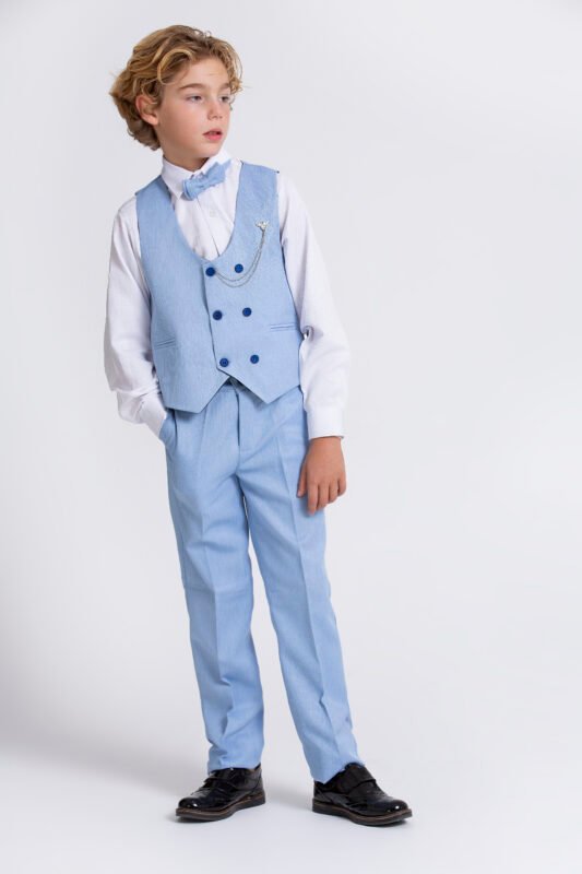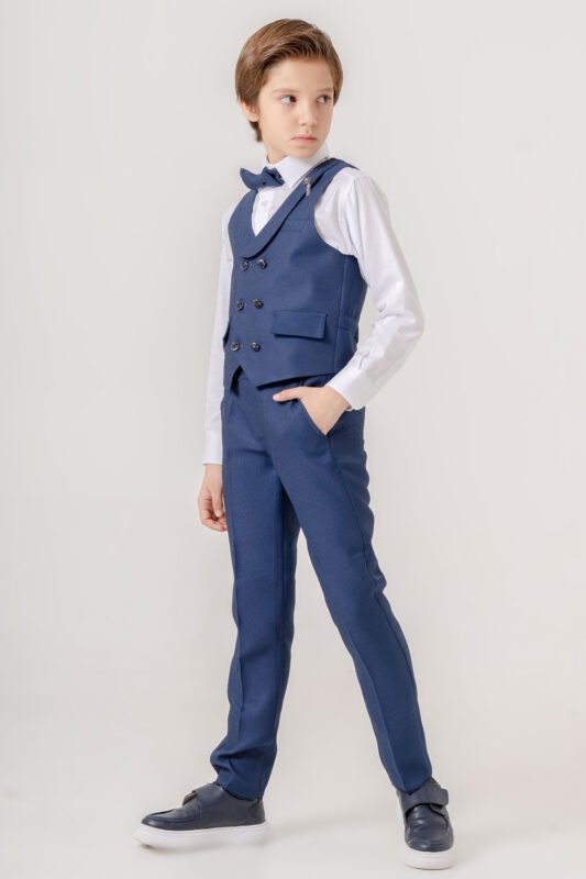 Kruvaze Erkek Çocuk Takım Elbise – Ceketli Şık Günlük ve Özel Gün Kombini – Mavi