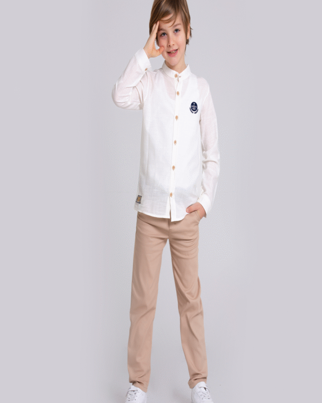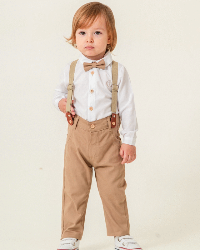 Kruvaze Erkek Çocuk Takım Elbise – Ceketli Şık Günlük ve Özel Gün Kombini – Bej