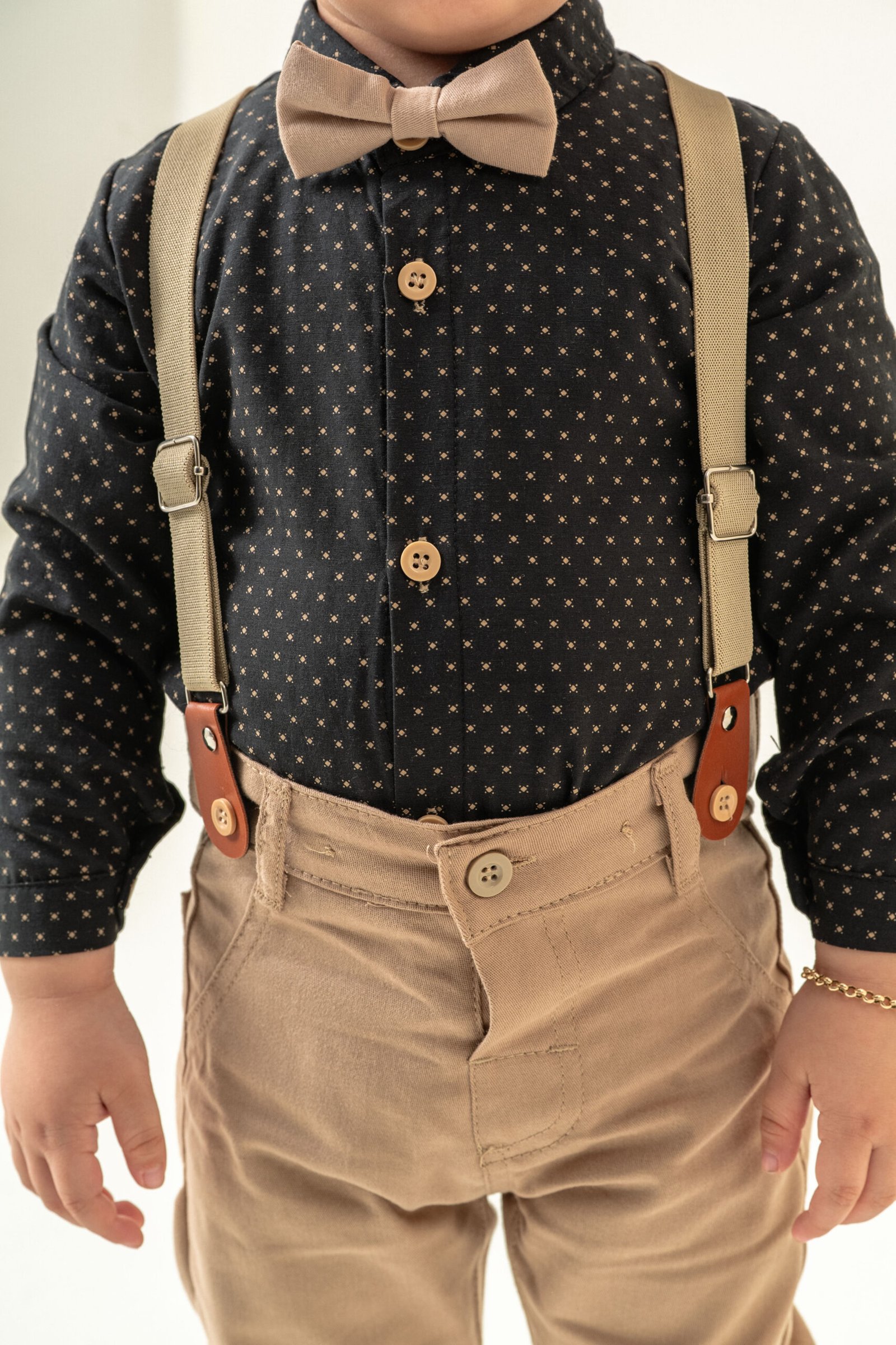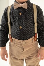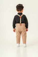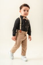 Erkek Bebek Askılı Papyonlu Takım – Desenli Gömlekli Şık Kombin-SİYAH