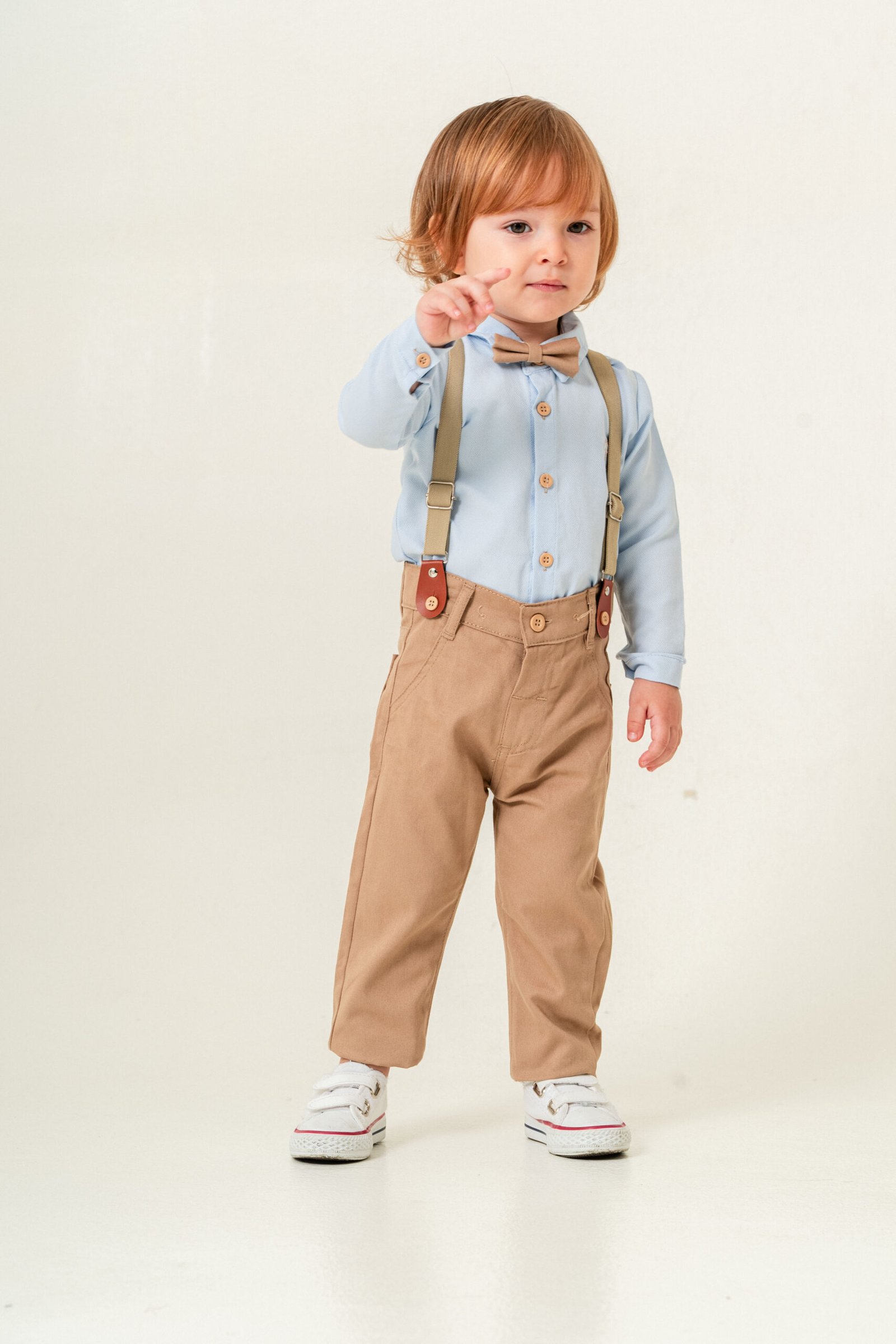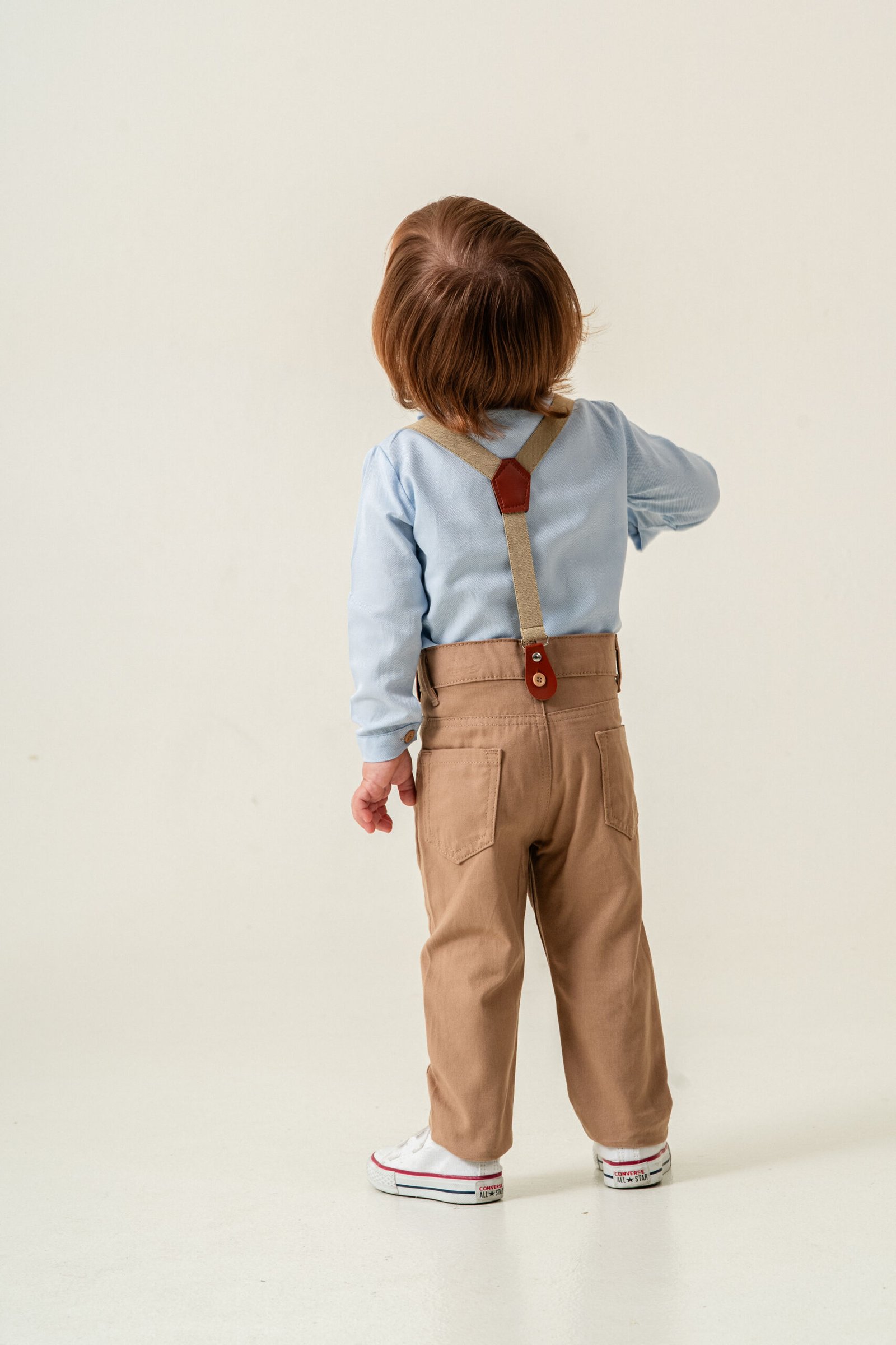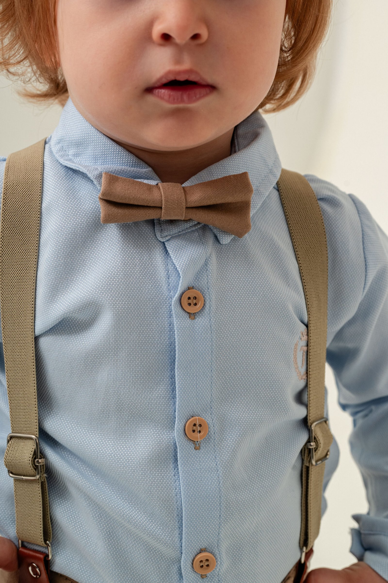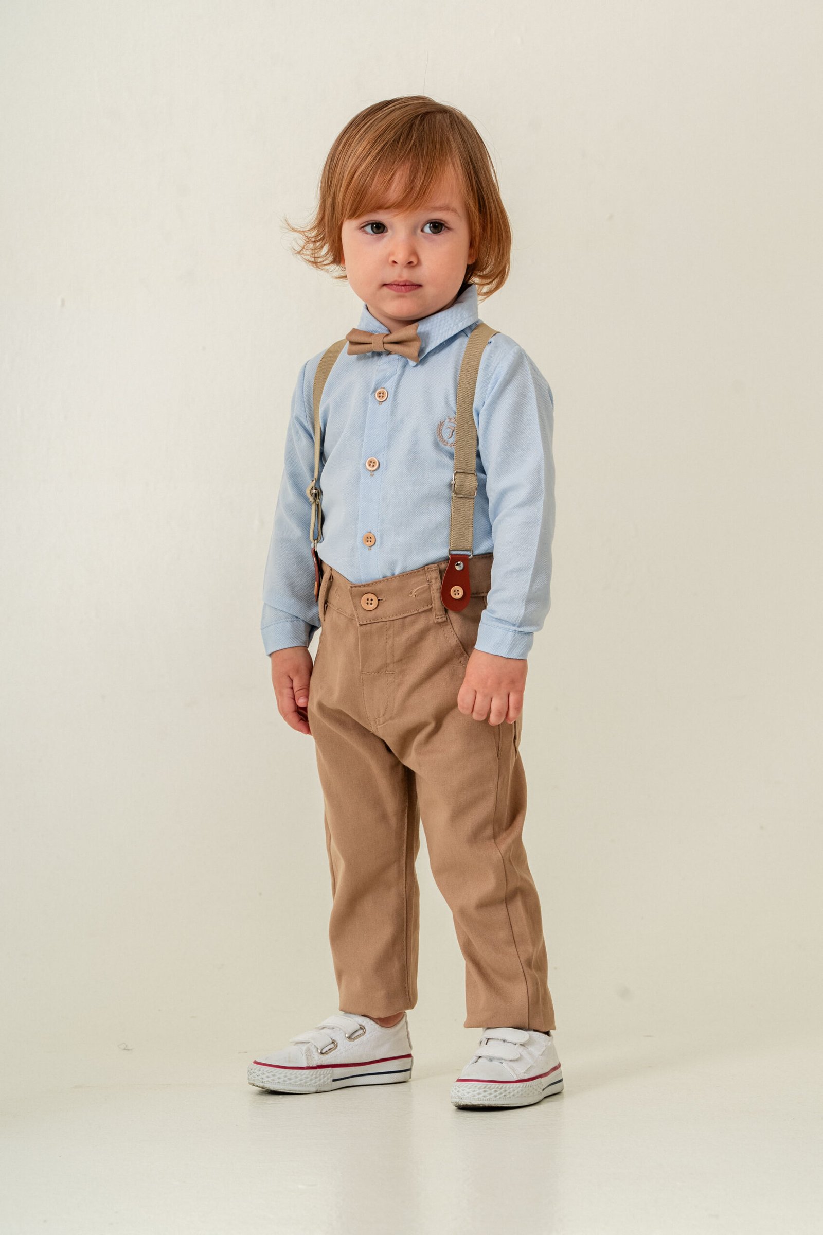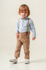Erkek bebekler için özel olarak tasarlanan askılı ve papyonlu takım, hem rahatlığı hem de şıklığı bir arada sunar. Doğum günü, özel davetler, bayram ve fotoğraf çekimleri için ideal bir kombin olan bu set, bebeğinizin tarzını ön plana çıkarır.
