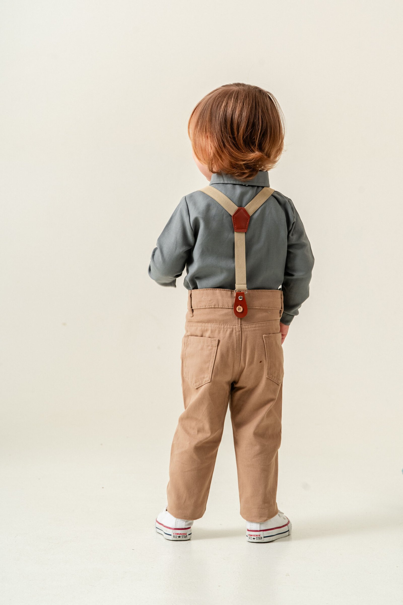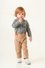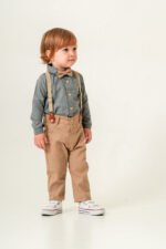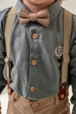 Erkek bebekler için özel olarak tasarlanan askılı ve papyonlu takım, hem rahatlığı hem de şıklığı bir arada sunar. Doğum günü, özel davetler, bayram ve fotoğraf çekimleri için ideal bir kombin olan bu set, bebeğinizin tarzını ön plana çıkarır.