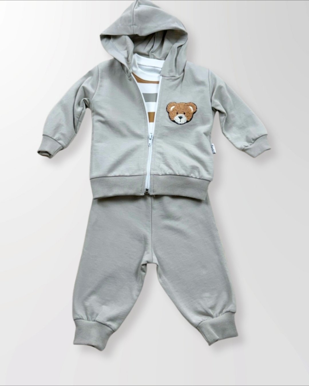 Minimal Ayıcık Nakışlı 3’lü Erkek Bebek Takım