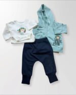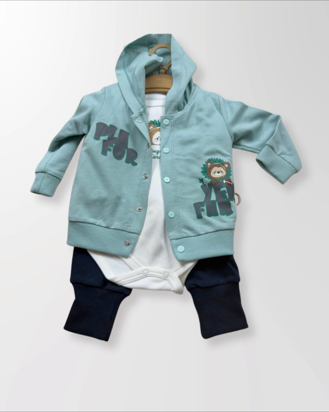 Player For Fun 3’lü takım, çıtçıtlı hırka, body ve rahat kesim alt parçadan oluşur.