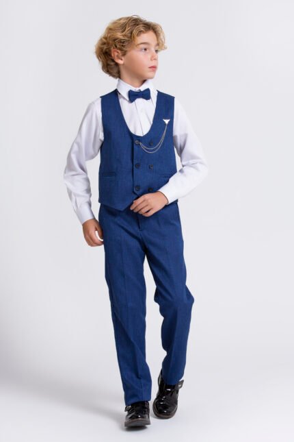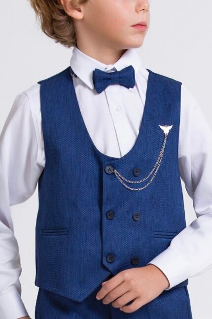 Zarif Erkek Çocuk Yelekli Takım Elbise – Papyonlu Şık Bayram ve Özel Gün Kombin-Saks