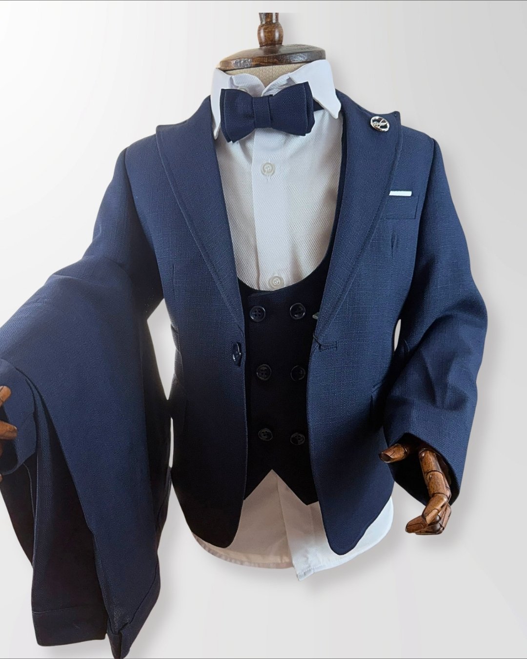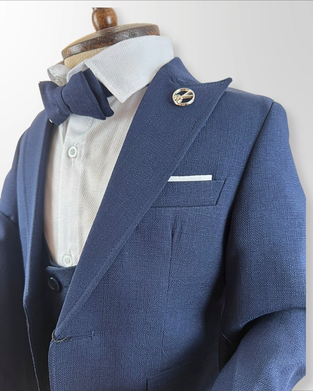 Takım; ceket, yelek, gömlek,pantolon ve papyondan oluşur. Düğün, nişan, sünnet, doğum günü ve fotoğraf çekimleri için ideal bir kombin sunar. Yumuşak dokulu kumaşı sayesinde hem şık hem de konforludur.
