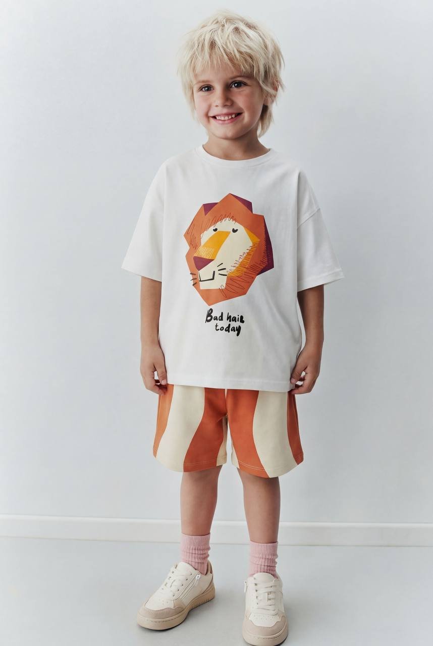 La’ciel Paris aslan baskılı çocuk takım, özgün tasarımı ve rahat yapısıyla miniklere hem konfor hem tarz sunar.