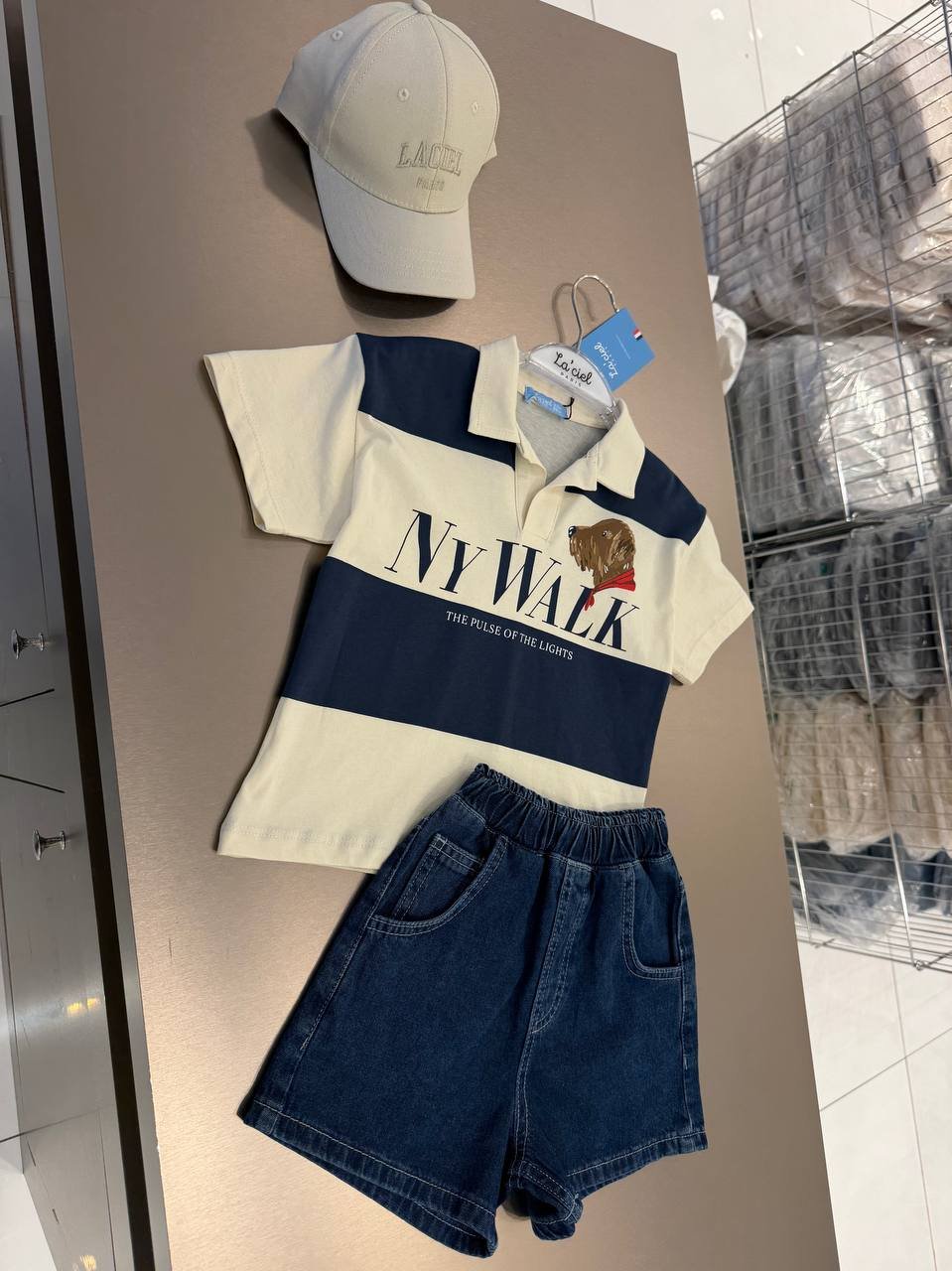2 parçadan oluşur (polo yaka t-shirt + kot şort)