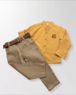 Şıklığı ve rahatlığı bir araya getiren Leo  Hakim Yaka Takım, minik beylerin özel gün kombinleri için tasarlandı. Modern hakim yaka gömleği ve kemer detaylı pantolonu ile hem bayramlarda hem doğum günlerinde hem de davetlerde zarif bir görünüm sunar.