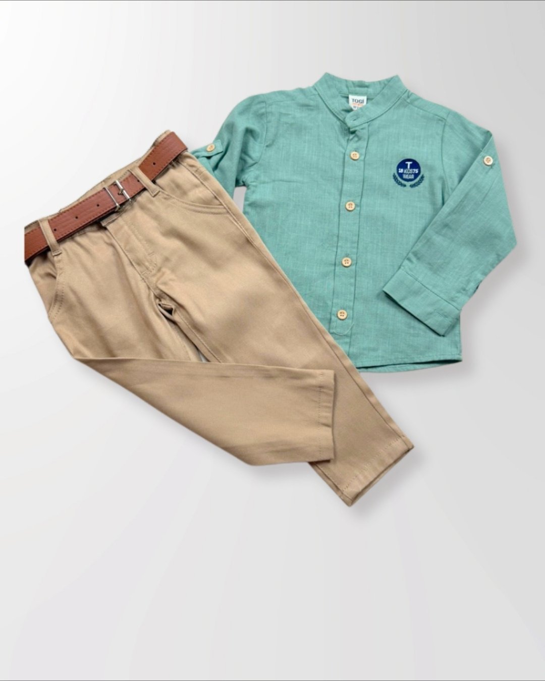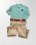 Şıklığı ve rahatlığı bir araya getiren Leo Hakim Yaka Takım, minik beylerin özel gün kombinleri için tasarlandı. Modern hakim yaka gömleği ve kemer detaylı pantolonu ile hem bayramlarda hem doğum günlerinde hem de davetlerde zarif bir görünüm sunar.