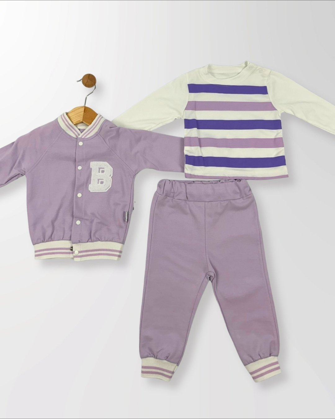 B Harfli Kolej Tarzı 3’lü Bebek Takım-Lila